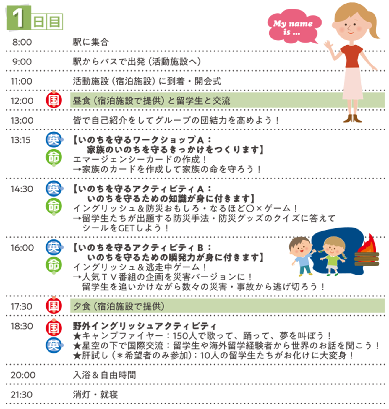 外国人留学生・日本人海外留学経験者との『イングリッシュ&いのちを守るためのキャンプ』